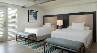 Check into this villa-style room with two double beds, featuring porcelain tile floors, a mini-fridge and a patio. The room is a scenic five-minute walk from the main tower and is near the bayside pool and Oystercatchers Restaurant.