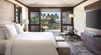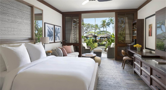 Ocean-View Rooms are located on the lower level in the King’s Pond, Seashell, Beach Tree and Palm Grove crescents and feature views of the ocean. Rooms feature a Nespresso machine, 65-inch LED TV, Klipsch wireless Bluetooth speakers and Makana Honua bath amenities. Most lower-level rooms include an outdoor lava-rock garden shower.