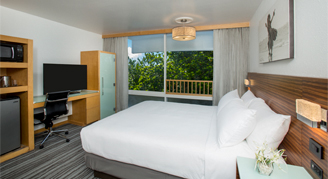 Each inviting guest room features complimentary Wi-Fi, a generously-sized work desk, a microwave, a refrigerator, an in-room safe and DoubleTree Sweet Dreams® Sleep Experience beds. Guests staying in a scenic oceanfront room will enjoy a breathtaking ocean view from their balcony.