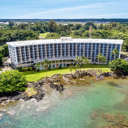 71 Banyan Drive, Hilo - Hawaii, HI, 96720, United StatesHilo's iconic oceanfront resort welcomes you to experience its renowned hospitality and hotel-style amenities. Guests will enjoy the comforts of air-conditioning in every room, from the banyan views to One-Bedroom Ocean View Suites with all-encompassing scenic views of Coconut Island, the Pacific Ocean, and towering Mauna Kea in the distance.