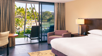 Only available for existing bookings. Rooms are located on the ground floor of the Palace Tower, near the Kohala pool, main lagoon, wedding chapel and Nui Italian restaurant and feature views of the tropical resort gardens. Additional amenities include Kolala Spa Mango bath products.