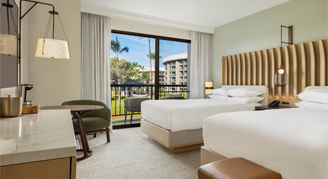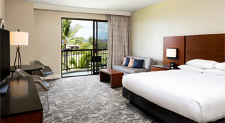 Rooms are located in the Makai Tower, near the Kohala Spa, Kona pool and Kamuela Provision Company restaurant and feature views of the tropical resort gardens. Additional amenities include a large shower and Kolala Spa Mango bath products. A rollaway bed is available upon request for a fee in king rooms only.