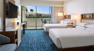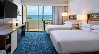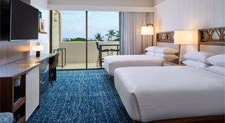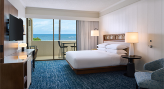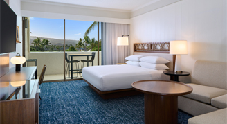 Rooms feature an ocean view from within the room. Additional amenities include access to the Voyager 47 Club Lounge. Club access includes nightly turndown service, exclusive lounge access, locally inspired breakfast with premium Kona coffee from 7 a.m. - 9:30 a.m., early evening pupus with a selection of beverages including local craft beer and signature wine from 4:30 p.m. - 6:30 p.m., complimentary Wi-Fi and social and meeting space.