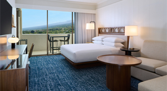 Rooms feature a panoramic ocean view from within the room. Additional amenities include access to the Voyager 47 Club Lounge. Club access includes nightly turndown service, exclusive lounge access, locally inspired breakfast with premium Kona coffee from 7 a.m. - 9:30 a.m., early evening pupus with a selection of beverages including local craft beer and signature wine from 4:30 p.m. - 6:30 p.m., complimentary Wi-Fi and social and meeting space.