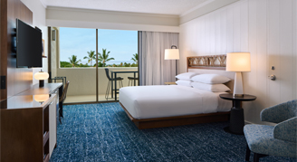 Newly renovated ADA accessible rooms featuring a view of the resort grounds.