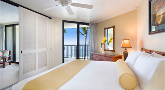 Suites feature an ocean view from the lanai. Additional amenities include two separate bedrooms, two bathrooms, and a spacious living area. Please note, bedding options are on a request only and are subject to availability upon check-in.