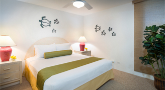 All suites offer full or partial-ocean views and "at home" comforts including a fully equipped kitchen and in-suite washer/dryer units for added convenience. Units are individually owned and decorated and reflect a casual Hawaiian style. Amenities include Blu-ray/DVD/PlayStation®, unlimited movie and video game rentals, and high-speed internet access (for a fee). Additional bedding is available upon request and may consist of a rollaway bed or an airbed (fee may apply). Mid-stay housekeeping service provided every 3rd day of stay.