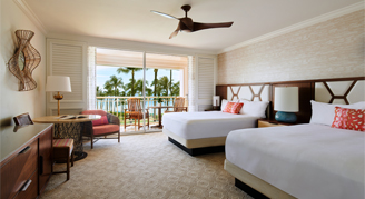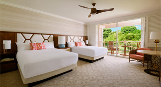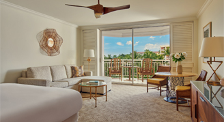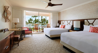 Rooms are located on the lower floors in all wings, except the Napua Tower, and feature a garden view.