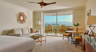 Rooms are located on the upper floors of the Wailea, Haleakala and Molokini Wings, and feature an unobstructed ocean view from the lanai.