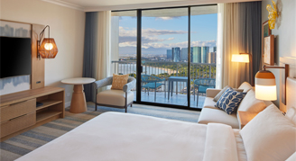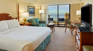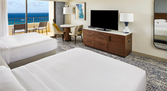 Newly renovated guest rooms are located in the Rainbow Tower and feature views of the ocean, coastline and resort.