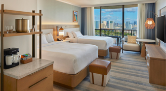 Newly renovated guest rooms are located in the Rainbow Tower. Rooms feature views of the Duke Kahanamoku Lagoon and coastline.
