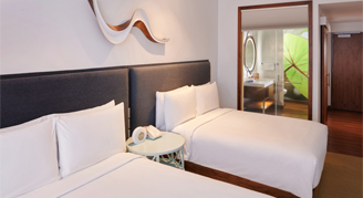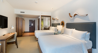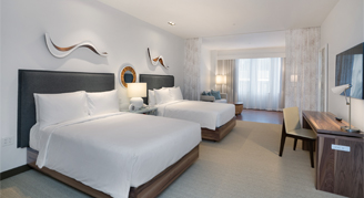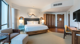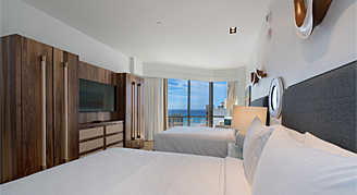 • This hotel offers 230 guest rooms designed in contemporary island style with a prime location just steps away from Waikiki’s beachfront. Room features include a rainfall shower, floor-to-ceiling windows, a smart TV, a Dry Bar® hair dryer and a deep-soaking tub (select rooms). Many rooms offer a stunning mountain view or a view of the Pacific Ocean, providing an iconic Oahu ambiance.