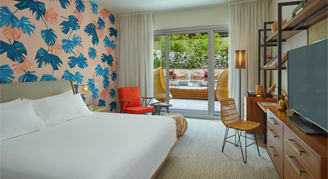 • The Laylow's 251 air conditioned guestrooms and suites are outfitted with custom furniture and bold, visually stunning monstera leaf wallpaper that perfectly captures the mid-century design and nostalgic motif of the hotel. Room amenities include high-speed internet access, a Smart T.V., a smart refrigerator, a private lanai and exclusive LATHER products.