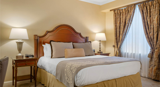 The suite is beautifully appointed with French and Creole accents and features a sitting area with a large granite bathroom.