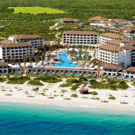 This elegant resort boasts a tranquil setting, two free-form pools and an exclusive 35,000-square-foot Mayan-themed spa.
