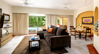 Suites are a two-level design and feature a garden view or a golf course view. Additional amenities include a living and dining area, an immersion pool and a Jacuzzi. This category is not recommended for guests with mobility issues.
