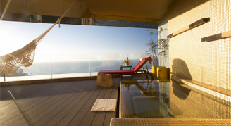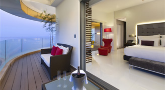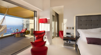 Suites feature a contemporary design, stylish fabrics, electric curtains and automated lights controlled by iPad technology, and a spacious terrace with a Jacuzzi.