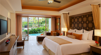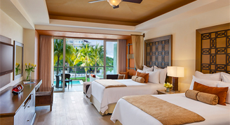 Spacious suites feature modern décor, marble floors, and a spacious bath with a separate shower and a Jacuzzi or a soaking tub. Select suites have direct access to the pool. Guests of the Preferred Club will enjoy additional amenities and services.