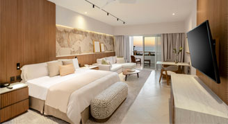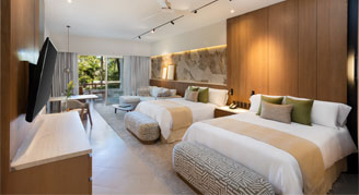 Suites are designed with a contemporary Mexican décor, teak wood furnishings and tropical accents. Select suites offer an outdoor Jacuzzi.