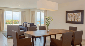 Suites feature a pool view or a partial-ocean view. Additional amenities include two bathrooms with jetted tubs, and a separate living and dining area. Suites are located on floors one through three.