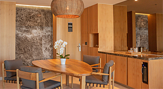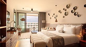 Suites feature resort, pool or ocean views and are located on floors 4 and 5. Additional amenities include a separate living area and a private plunge pool on the outdoor terrace.
