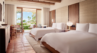 The elegant rooms and suites are set in low-rise buildings and integrate natural elements, such as river stone, marble, onyx, wood, and clay. Features include the renowned St. Regis Butler Service™, a private outdoor shower and Remède toiletries. Select suites have a few steps and may not be ideal for guests with mobility issues. Complimentary wireless internet access is offered throughout the resort.