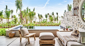 Rooms and suites feature a contemporary design inspired by the diverse Mexican craft culture. Select suites include a separate living area or a private plunge pool on the outdoor terrace.
