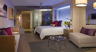 This vibrant, chic, and energetic all-inclusive resort is exclusively for adults and sits beachfront near Puerto Morelos. Ideal for both couples and friends traveling together, the resort's 362 ultra-modern suites are located in two sections – each with a unique personality and atmosphere. This resort offers a heated pool, a giant Jacuzzi, numerous trendy restaurants and bars, a state-of-the art nightclub, a fitness center, and a spa featuring a hydrotherapy area. Guests can enjoy daily and nightly entertainment, DJ music, weekly theme parties, shows, dancing, and special events. Guests of the Xhale Club will also enjoy access to personalized check-in and checkout, a private lounge serving daily continental breakfast, afternoon hors d'oeuvres, along with upgraded mini-bar service and bath amenities. Complimentary wireless internet access is offered throughout the resort.