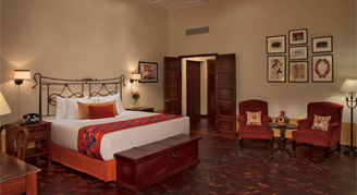 Suites comprise of two connected Deluxe Junior Suites with a garden view. Suites are located in a hacienda-style building.