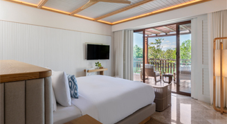 Suites feature a garden or lagoon view and are located in two-story buildings. Additional amenities include a separate living room, a second bathroom, butler service and a plunge pool on the outdoor terrace. Please note: Casita buildings do not have elevators.