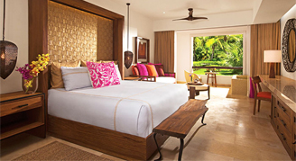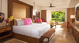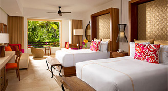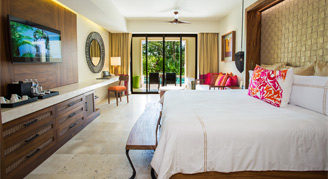 Spacious suites feature an elegant design, fresh interpretations of Mexican art, La Huasteca-style embroidery with Mayan gold accents, natural elements, and nature-inspired décor, which includes elements of water, wood, stone and fire. Select suites have direct access to a pool. Guests of the Preferred Club and Romance categories will enjoy additional amenities and services. Complimentary wireless internet access is offered throughout the resort.