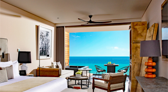 Suites feature an ocean or oceanfront view. Additional amenities include a private plunge pool on the outdoor terrace.