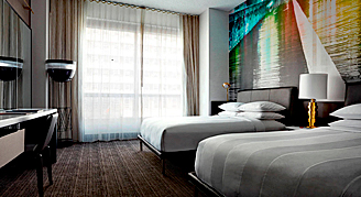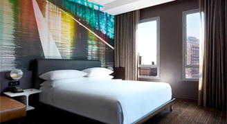 Reflecting a vibrant Brooklyn setting, these deluxe guest rooms offer comfort, stylish details, and modern touches.