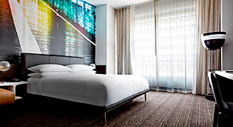 One of the most exciting hotels in Brooklyn, New York, this hotel provides guests with an inspired vantage point to work, play and relax. The hotel features thoughtfully designed guest rooms and suites boasting amenities like plush bedding, flat-panel TVs and high-speed Wi-Fi. Some accommodations feature private terraces with stunning views of the Brooklyn Bridge and downtown skyline. Dine at one of the hotel's two restaurants, The Great Room Bar & Lounge, and Brooklyn Pantry, where locally-sourced cuisine and Brooklyn Winery vintages take center stage. Reboot in the fitness center featuring Peloton Bikes. Come chart your own adventure at New York Marriott at the Brooklyn Bridge.