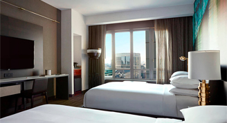 Experience the landscape of Downtown Brooklyn’s vibrant neighborhood in these high floor city-view guest rooms, offering stunning views, comfort, stylish details, and modern touches.
