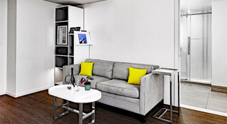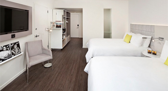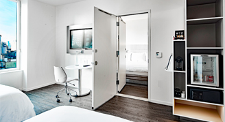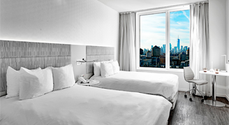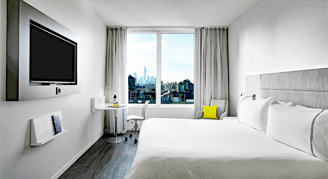 Located on floors 19 and 20, these rooms feature breathtaking New York City views, and a modern, contemporary design. Oversized floor-to-ceiling windows offer ample natural light during the day. Rooms also include flat-screen TVs with separate Bluetooth and USB panel connections, a modern bathroom with rain shower or tub, and Innside bathroom amenities.