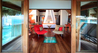 Villas are located at the end of the pontoon and feature a panoramic view of the lagoon with a private sun deck and terrace. Additional amenities include, in-room check-in, a bottle of Champagne upon arrival, a complimentary mini-bar stocked daily with two beers, two bottles of water and two sodas, and other VIP services.