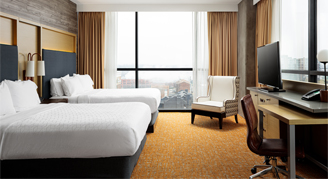 Take the elevator to the sky in the Premium City-View Room with guaranteed 15th-floor access featuring wraparound windows that allow for breathtaking city views.