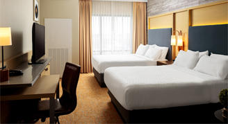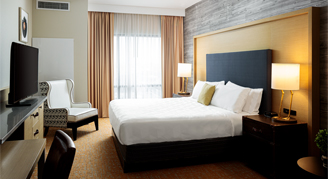 Rooms feature a 49" HD interactive television, safe, micro-fridge, iHome, Keurig coffee maker, hairdryer, and an individual thermostat. Bedding is assigned at the time of check-in, subject to availability and cannot be guaranteed.