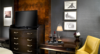 Spacious, accessible Deluxe Rooms feature urban elegance with a Music City inspired touch - in the heart of Music City. Amenities include a fridge, couch, in-room coffee, an oversized desk and a large bathroom with roll-in shower.