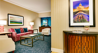 Fairmont Austin features two magnificent Presidential Suites with striking panoramic views of Austin's spectacular cityscape and Lady Bird Lake. Each suite is an expansive 1,640 square feet, highlighting a variety of premier amenities suited for the discerning traveler. These suites include spacious living rooms with a dining table and large lounging sectional. Large wet bar with separate refrigerator and microwave, and two baths with plush bathrobes.