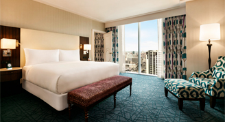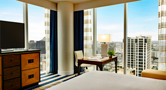 Situated on the 8th through 24th floors with striking cityscape views, Fairmont rooms set the standard for timeless sophistication and are elegantly appointed with vibrant accents and contemporary décor. Fairmont rooms boast bedside charging hubs and reading lamps as well as a work desk with upgraded technologies. Guests will enjoy lavish bathrooms with plush bathrobes, and a stylish barn door providing a private water closet.