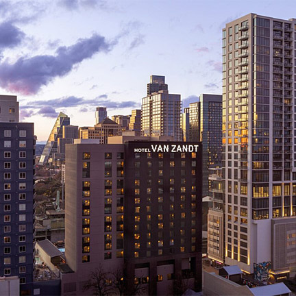 605 Davis Street, Austin, TX, 78701, United StatesHotel Van Zandt is your all-access pass to downtown Austin, located in the heart of the Rainey Street District. You’ll find a rough-around-the-edges kind of sophistication, from the decked-out accommodations to the splashy rooftop pool. Elevate your Austin experience and catch vibes at Hotel Van Zandt.
