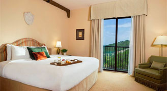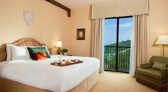 Deluxe Rooms are standard rooms which have lovely views of the surrounding hotel property with a king bed or two double beds. They also feature a spacious bathroom with a walk-in shower.