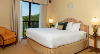 The stunning Mockingbird Suites are one-bedroom suites with a large living room and dining area, including a table for four. These suites also feature a spectacular view of the courtyard or the surrounding hill country, a walk-in closet, and a full bathroom with a bathtub and separate shower.