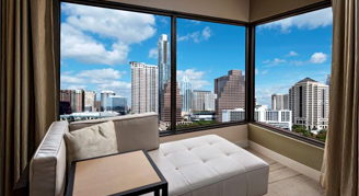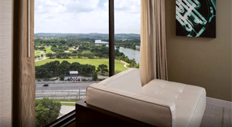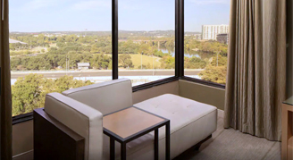 Corner Rooms feature stunning views through wraparound windows, creating an unparalleled setting as you overlook Lady Bird Lake and the Texas Hill Country.