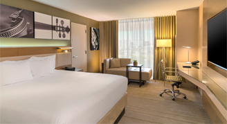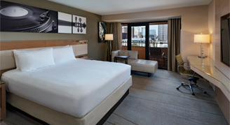 These contemporary accommodations feature one king bed with down duvet and pillowtop mattress, deluxe amenities and a view of South Austin or the Texas Hill Country.