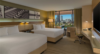 These contemporary accommodations feature two queen beds with down duvet and pillowtop mattress, deluxe amenities and a view of South Austin or the Texas Hill Country.
