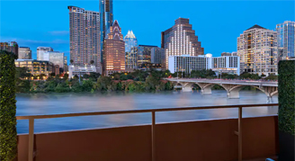 Serene views of Lady Bird Lake, South Congress Bridge and the Austin downtown skyline enhance the contemporary interiors of these resort-like accommodations.