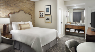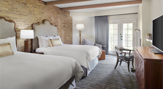 Ideal for the traveler on-the-go, experience the vibrant history of San Antonio within these intimate rooms that face the interior of the hotel with French doors, exposed brick walls and beamed ceilings.